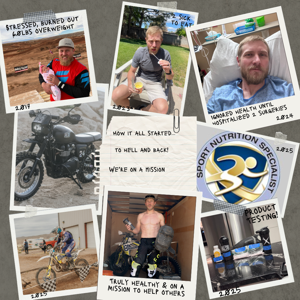 I spent a year working with a dietician and 4 other doctors, rebuilding myself piece by piece, until I was strong enough to ride harder than ever. My passion for racing combined with my realization that I was taking health for granted grew into a purpose — I became a certified sports nutritionist to give other riders the tools to resist the same decline. Then ALTR MOTO was born.
